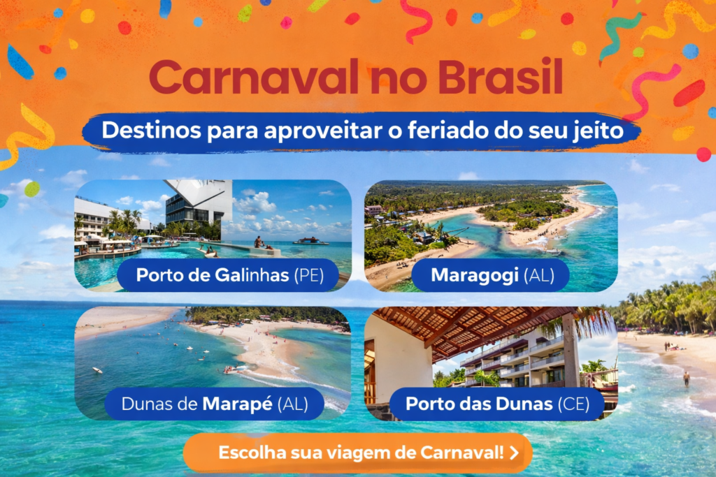✈️ No final deste post, você confere algumas opções de pacotes e hospedagens disponíveis para o período de Carnaval.