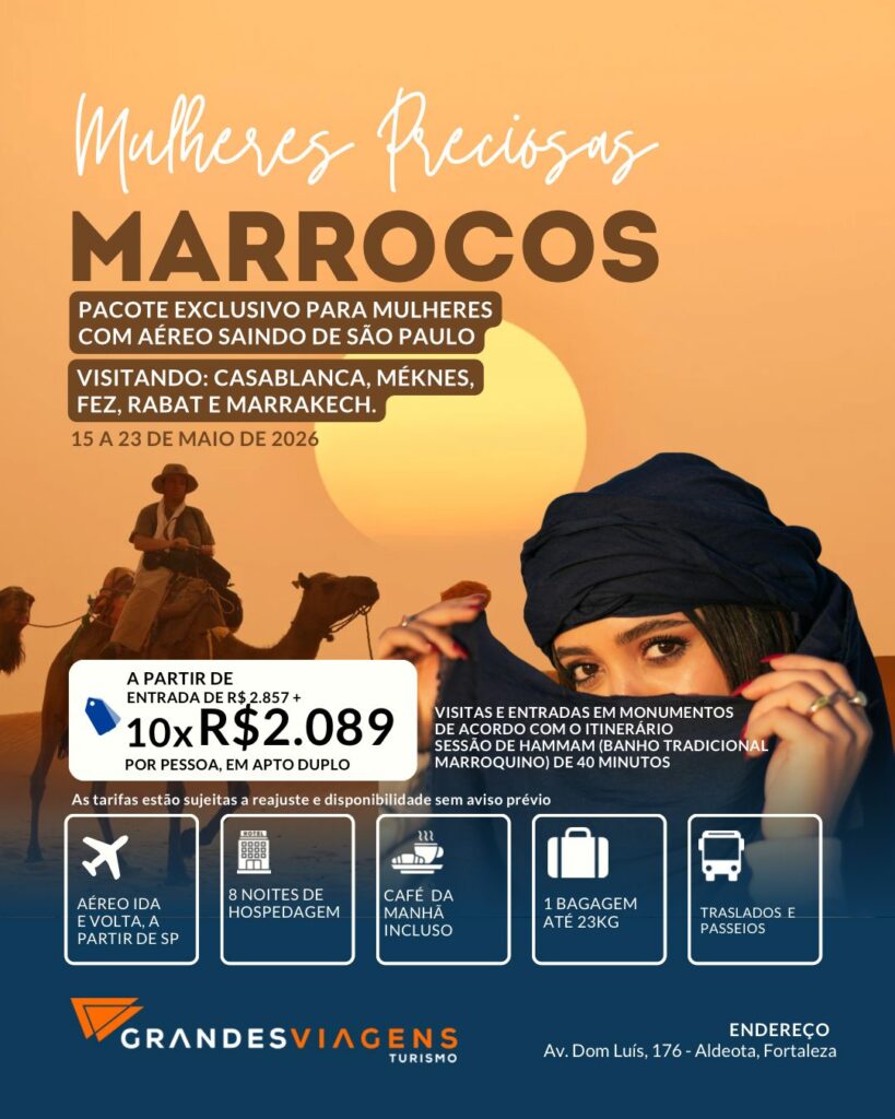 Em 2026, os destinos escolhidos são Marrocos e Peru, dois lugares que unem cultura, espiritualidade, paisagens incríveis e vivências inesquecíveis.